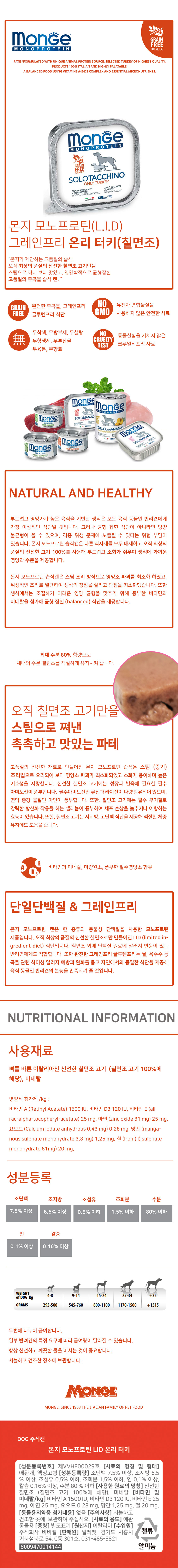 [DOG]몬지 모노프로틴(L.I.D) 그레인프리 온리 터키 150g