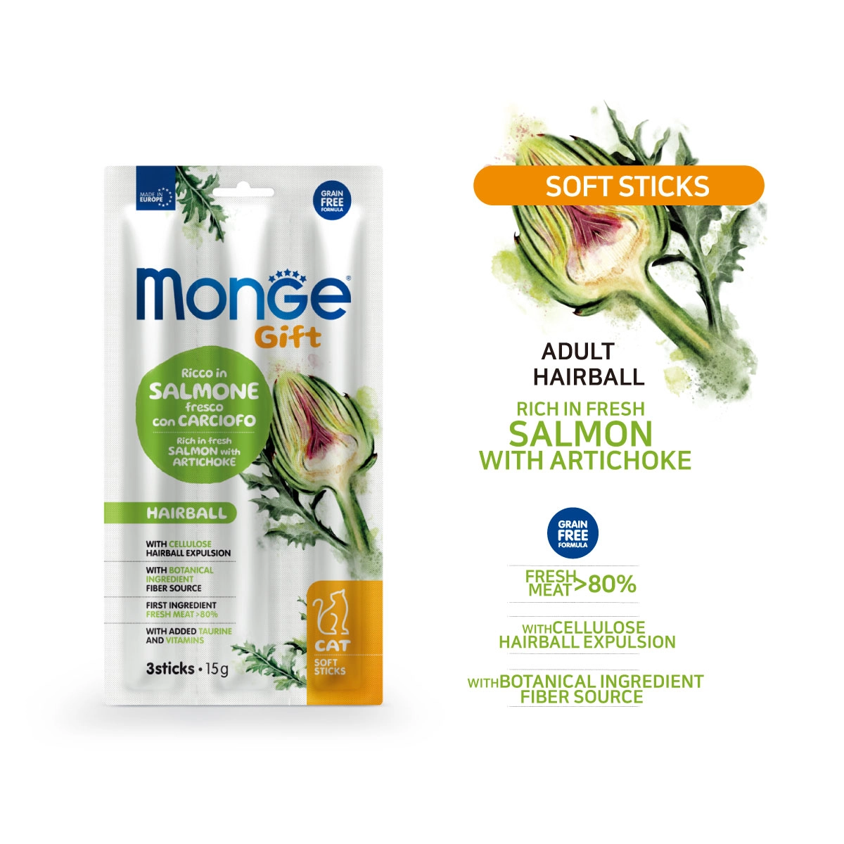 [CAT] 몬지 기프트 그레인프리 뉴트리션 스틱 헤어볼 케어 연어와 아티초크 15g (5g 3개입)