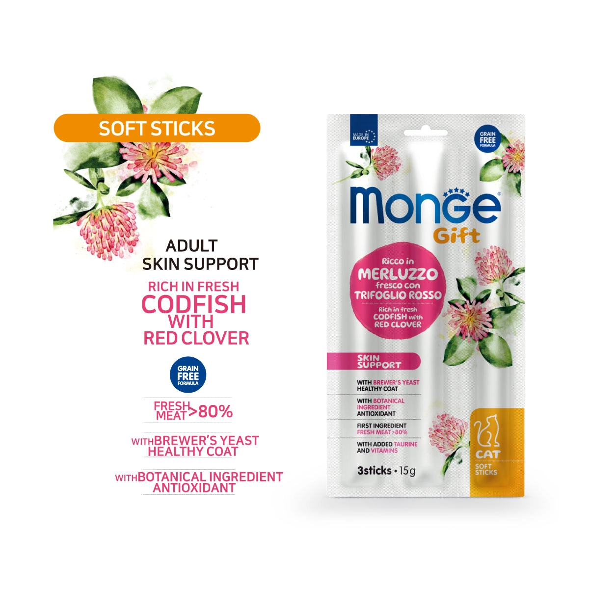 [CAT] 몬지 기프트 그레인프리 뉴트리션 스틱 스킨 서포트 신선한 대구와 레드클로버 15g (5g 3개입)
