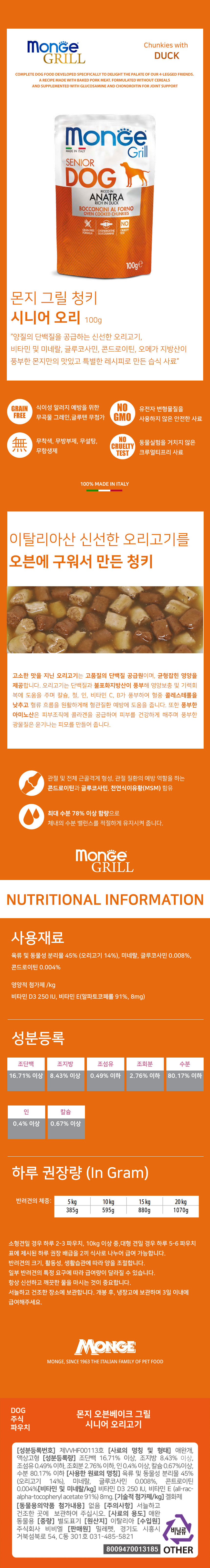 [DOG]몬지 오븐베이크 그릴 시니어 오리 100g