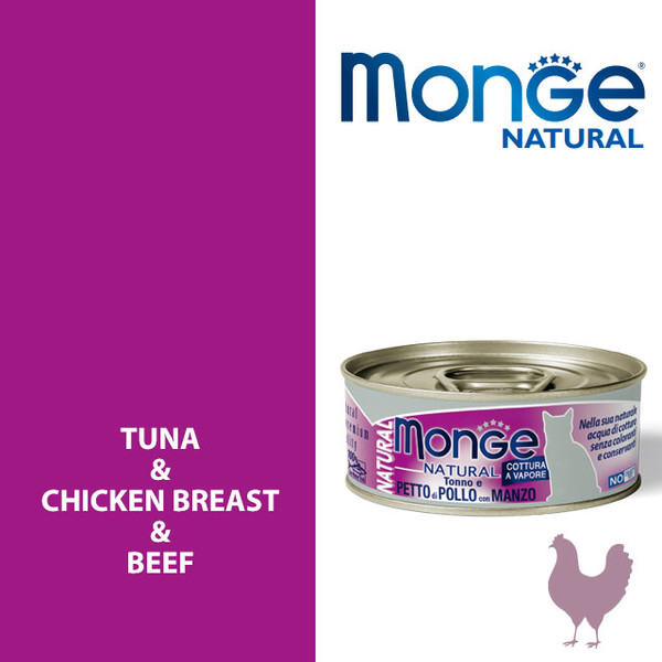 [CAT]몬지 내추럴 황다랑어와 닭가슴살, 소고기 80g