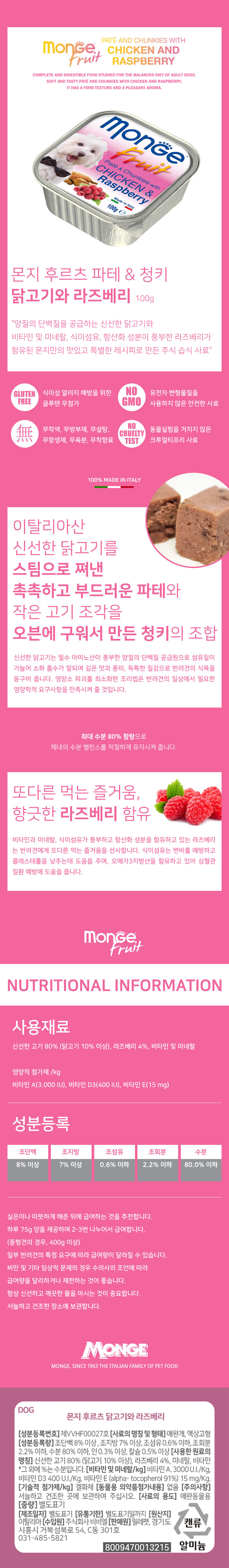 [DOG]몬지 후르츠 파테&청키 -신선한 닭고기와 라즈베리- 100g