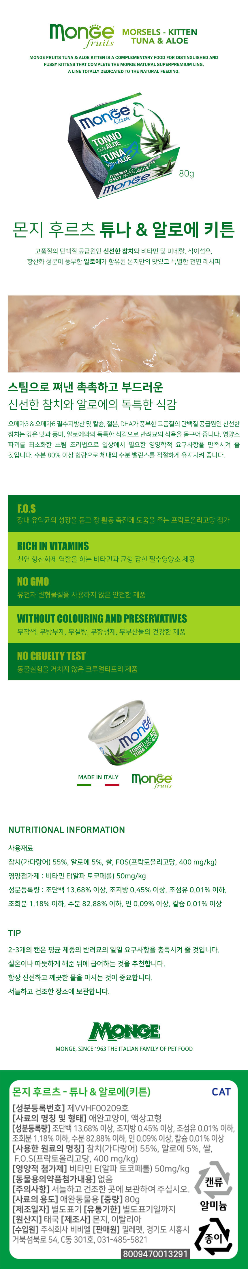 [CAT]몬지 후르츠 튜나 & 알로에 - 키튼 80g
