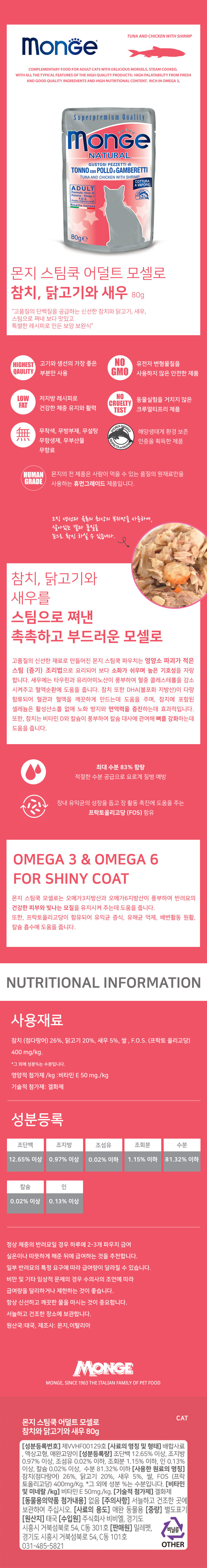 [CAT]몬지 스팀쿡 어덜트 모셀로 참치와 닭고기와 새우 80g