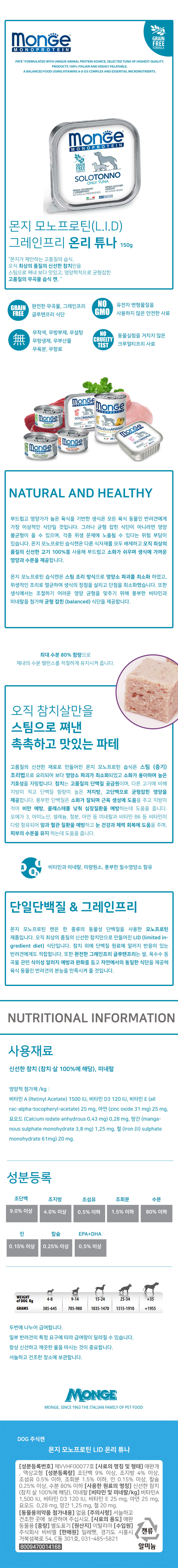 [DOG]몬지 모노프로틴(L.I.D) 그레인프리 온리 튜나 150g