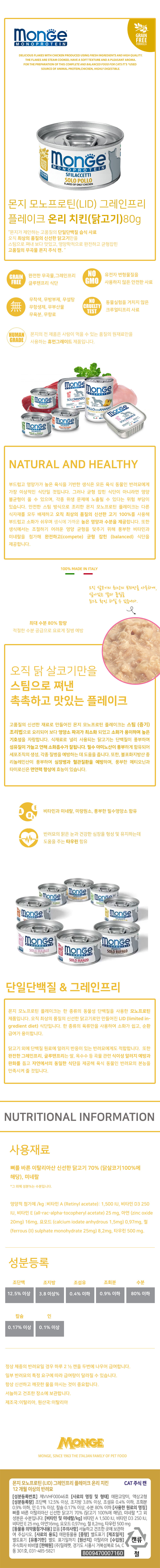 [CAT]몬지 모노프로틴(L.I.D) 그레인프리 플레이크 온리 치킨 80g