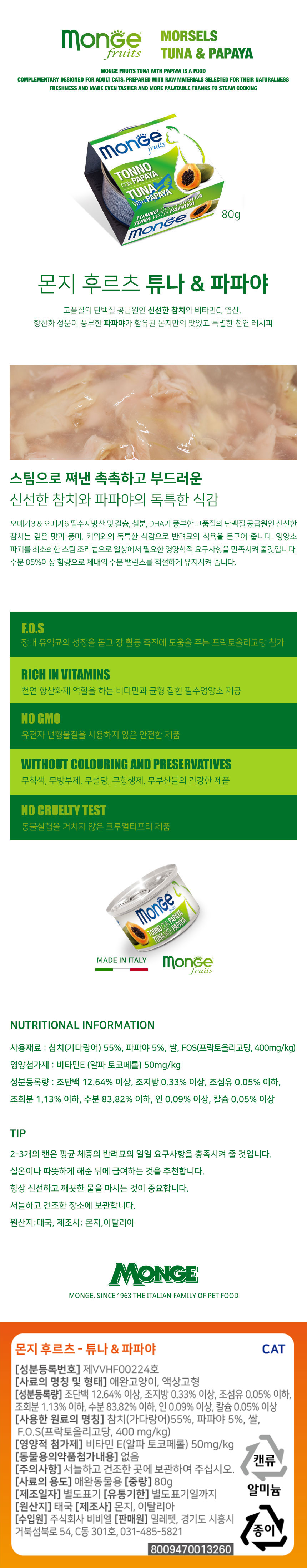[CAT]몬지 후르츠 튜나 & 파파야 - 80g