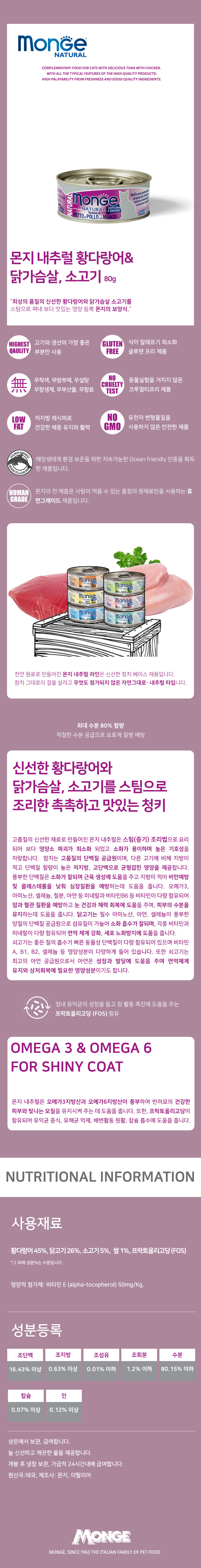 [CAT]몬지 내추럴 황다랑어와 닭가슴살, 소고기 80g
