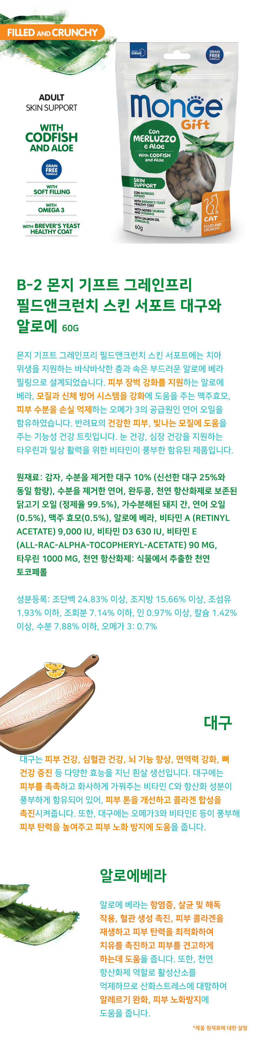 [CAT] 몬지 기프트 그레인프리 필드앤크런치 스킨 서포트 대구와 알로에 60g